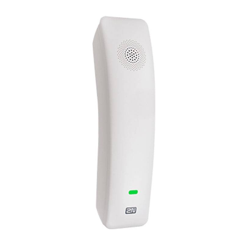 Weiße 2N IP-Handset Türsprechanlage, geeignet für die Bedürfnisse eines Kunden, der nur ein einfaches Audiogerät benötigt, um mit dem Besucher zu kommunizieren und die Tür zu öffnen.