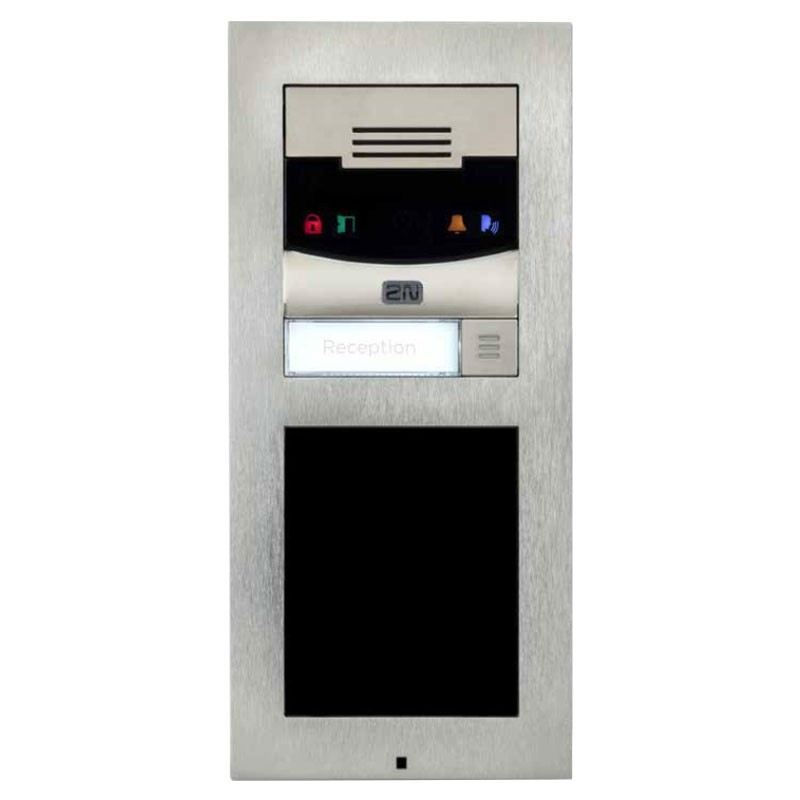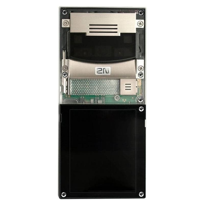 - 2N® LTE Verso hat den selben Anschluss der Module wie 2N® IP Verso, deshalb kann jedes unserer 14 verfügbaren Module angeschlossen werden, z.B. Display, RFID Lesegerät, Bluetooth oder Fingerabdruckscanner.