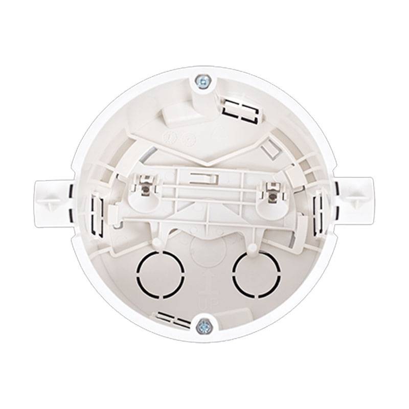 Installationsdose für die 2N-Innensprechstelle, die es ermöglicht, das Produkt nach der finalen Montage der Gegensprechanlage leicht zu drehen um eine waagrechte Installation zu erreichen. Sie benötigt eine 103 mm breite und 50 mm tiefe kreisförmige Öffnung: