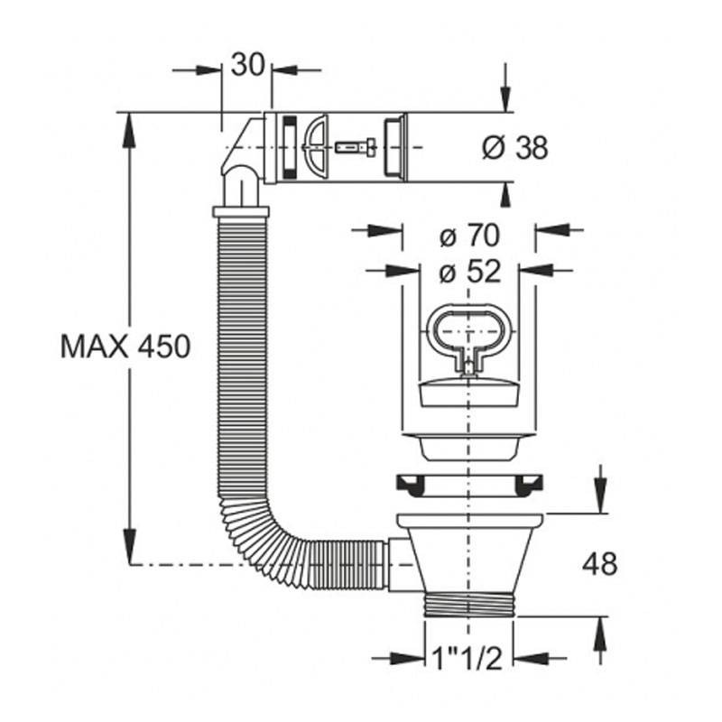 Bonomini Ablaufgarnitur Spüle mit rundem Überlauf mit Gitter mit folgenden Merkmalen: