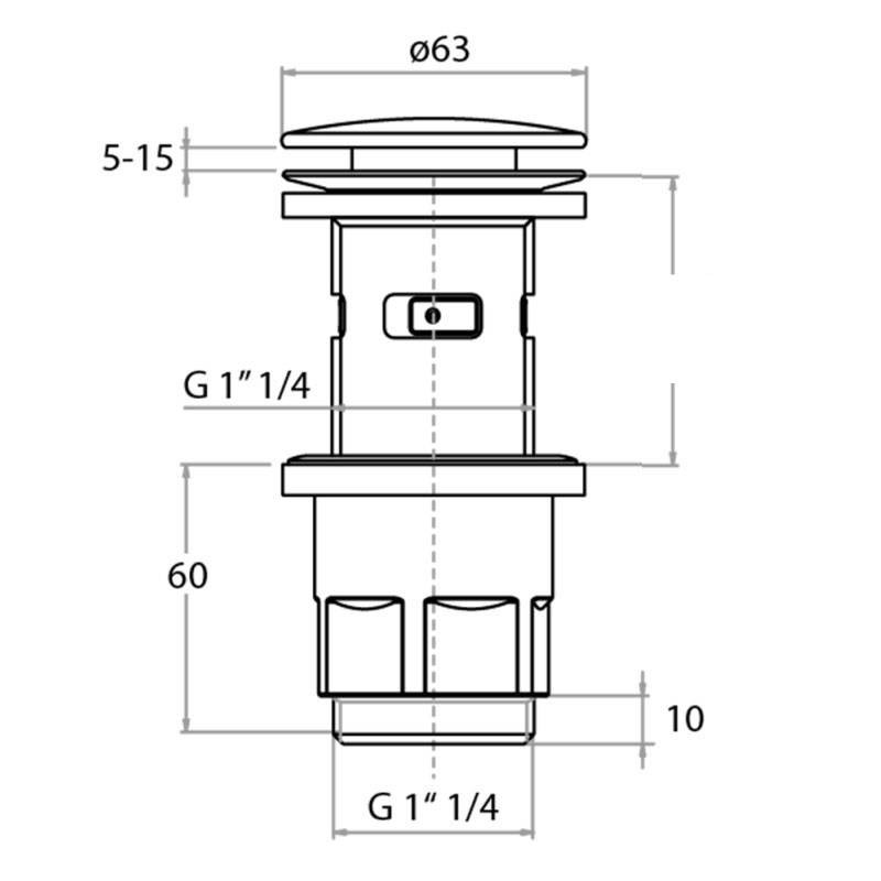 Cgs Waschbecken-Ablaufgarnitur mit Deckel mit Druckmechanik Skip-up 2.0 und Schnellkupplungsadapter zum Umbau in eine immer offene Version mit folgenden Merkmalen: