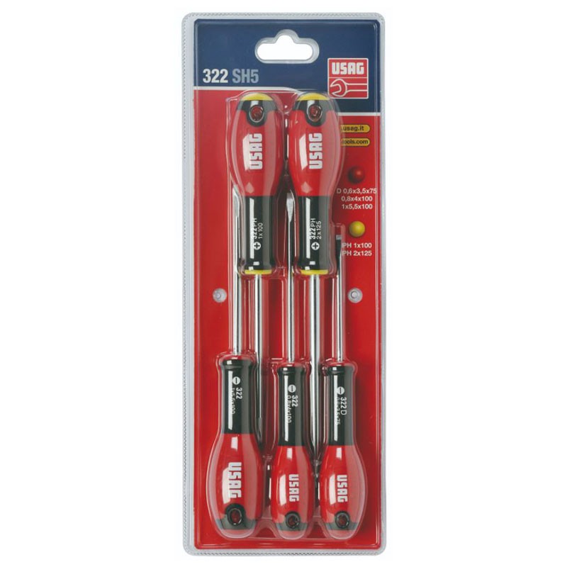 Usag Set mit 5 Schraubendrehern 322 SH5 für Schlitz- und Kreuzschlitzschrauben: