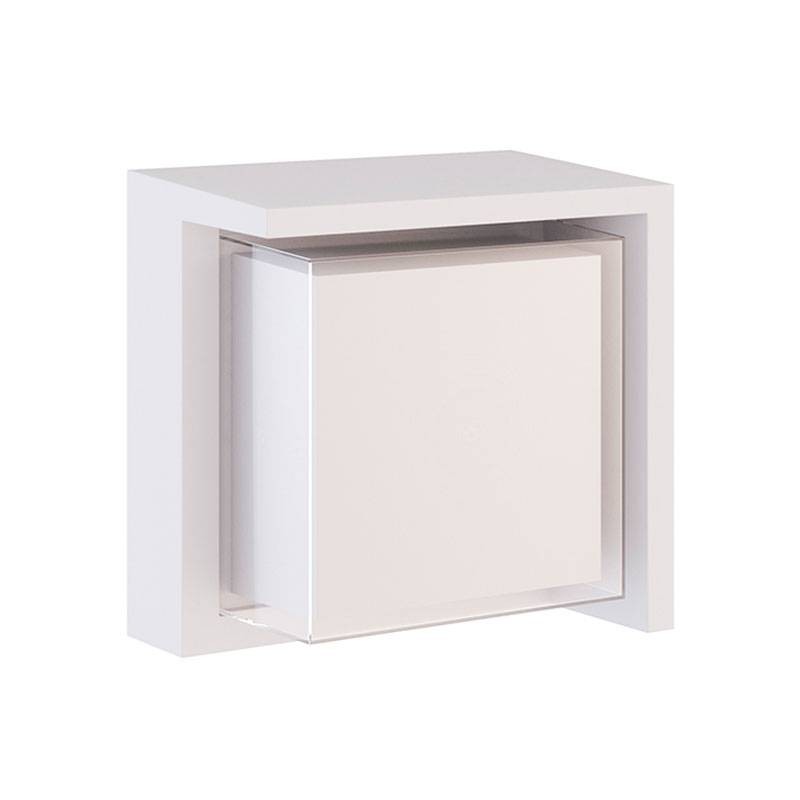 Blis ist ein LED-Wand- oder Bodenstrahler für den Außenbereich mit 15 Watt Leistung im quadratischen Format aus weißem Polycarbonat.