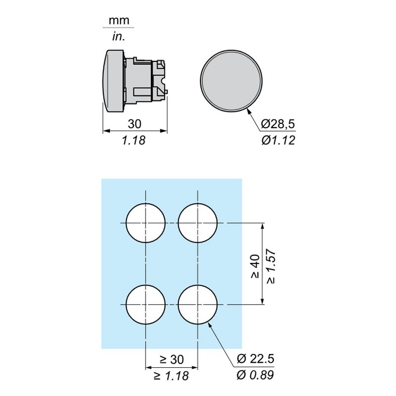 Schneider Telemecanique glatte Kontrolllampe, Ø22 grün für Universal-LEDs, mit folgenden Eigenschaften: