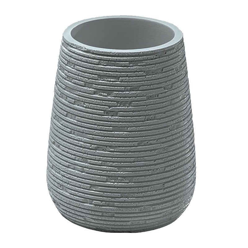 - 1 stehender Zahnputzbecher grau, aus Kunstharz, mit Steineffekt. Abmessungen: Durchmesser 8,7x11,1cm.
