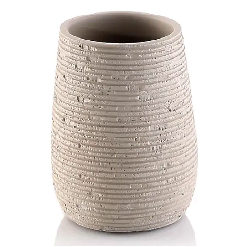 - 1 stehender Zahnputzbecher graubeige, aus Kunstharz mit Steineffekt. Abmessungen: Durchmesser 8,7x11,1cm.