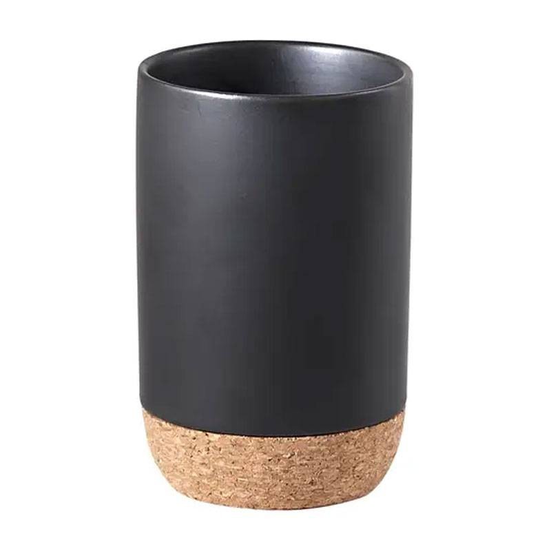 - 1 Stehender Zahnputzbecher, mattschwarz, aus Keramik und Kork, Durchmesser 7x10,5cm.