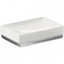 - 1 Stehender Seifenspender weiß, aus weißer Keramik und verchromtem Sockel, mit verchromtem Harzspender, Maße: 7,3x7,3x17,5cm