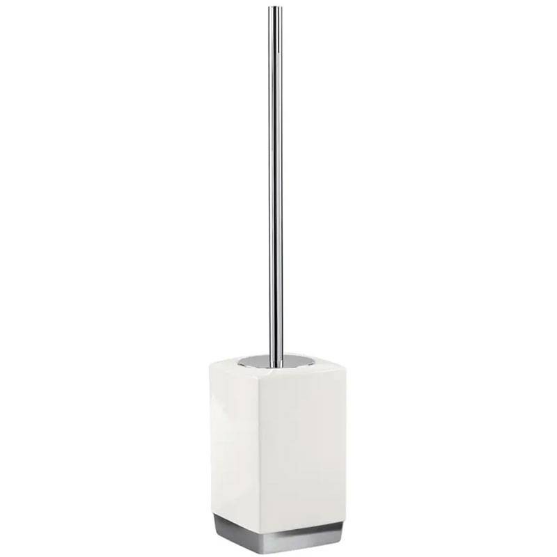- 1 Stehender WC-Bürstenhalter weiß, aus weißer Keramik und Chromsockel, Maße: 9,7x9,7x47cm