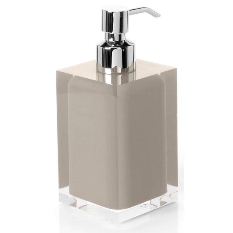 - 1 Stützender Seifenspender aus Harz, Maße 7x7x16,2cm, mit verchromtem Kunststoffspender
