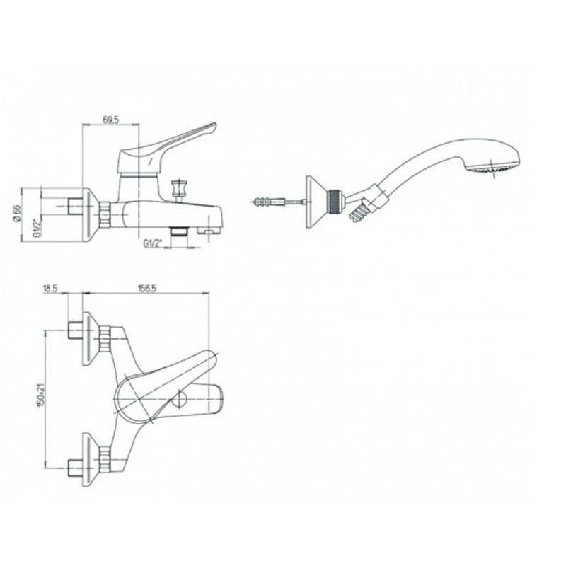 Im Lieferumfang enthalten: Handbrausenhalterung, Einstrahl-Handbrause und 150 cm Schlauch.