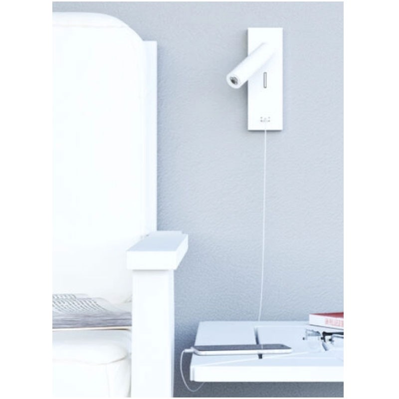 Beneito Faure LED-Wandleuchte PURE 4W 2700K weiß mit USB 4142-V2