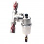 An der Oberseite befindet sich ein Entlüftungsventil. Zur Reinigung des Filters schließen Sie die beiden Kugelhähne, entfernen den Magneten, öffnen den unteren Kugelhahn und lassen die gesammelten Verunreinigungen in einen Behälter ab. Bei starker Verschmutzung und Ablagerungen kann der Filterkörper mit dem mitgelieferten Schraubenschlüssel abgeschraubt werden, um das Gewebe und das Innere des Filters gründlich zu reinigen. Nach dem Abschrauben öffnen Sie den Kugelhahn, beginnend mit dem am Filtereingang, entlüften Sie durch den manuellen Entlüftungshahn oben und öffnen Sie dann den Kugelhahn in Richtung des Kessels.