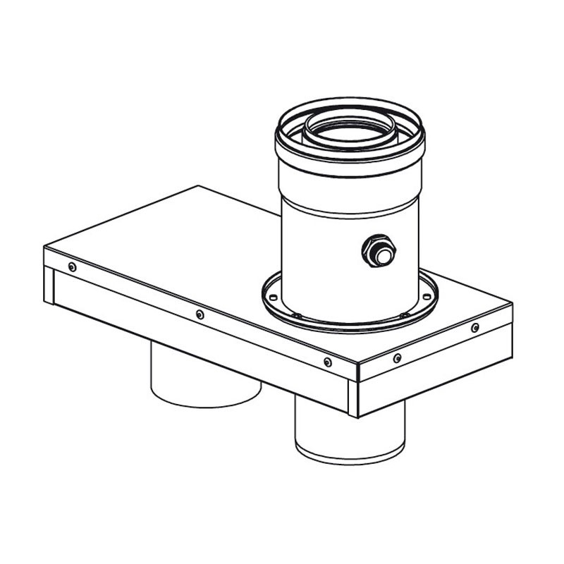Der Rinnai-Abgasadapter reduziert den Durchmesser von 80/80 auf 60/100. Mit diesem Adapter können Sie von einem Split-System auf ein Koaxialsystem umsteigen.