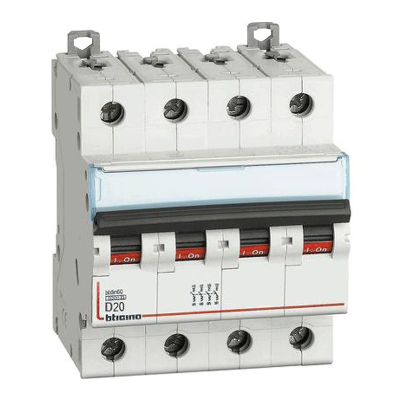 Bticino Thermisch-magnetischer Schutzschalter 20A 4 Pole 6KA Kurve D 4 Module FN84D20