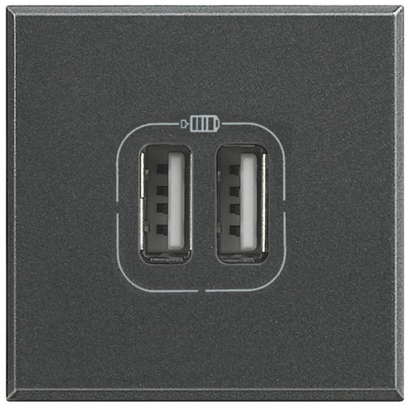 Doppel-USB-Ladegerät Bticino Axolute Grey Anthracite. Das Ladegerät wird mit Strom versorgt und dient zum Laden von Handys, Smartphones, Tablets und allen Geräten, die über USB geladen werden können.