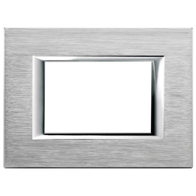 Quadratische Platte 3 Plätze Bticino Axolute für Unterstützung H4703. Farbe: CHROME. Es ist nicht möglich, die Platte auf andere Bticino-Serien zu montieren, sondern nur auf die Axolute-Serie.