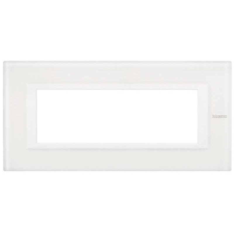 Rechteckige Platte 6 Plätze Bticino Axolute für Unterstützung H4706. Farbe: WEISSES GLAS. Es ist nicht möglich, die Platte auf andere Bticino-Serien zu montieren, sondern nur auf die Axolute-Serie.