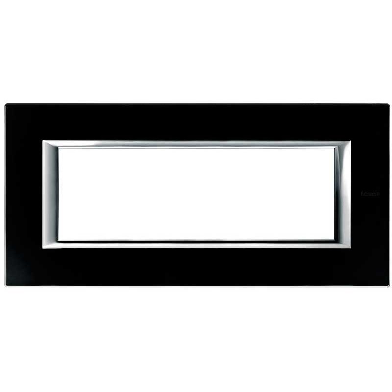 Rechteckige Platte 6 Plätze Bticino Axolute für Unterstützung H4706. Farbe: GLASS BLACK NIGHT. Es ist nicht möglich, die Platte auf andere Bticino-Serien zu montieren, sondern nur auf die Axolute-Serie.
