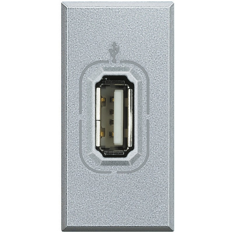 Bticino Axolute Grey Tech USB-Buchse. Die USB-Buchse wird nicht mit Strom versorgt. Sie wird normalerweise verwendet, um eine USB-Buchse eines PCs in einen anderen Raum im Haus zu bringen.
