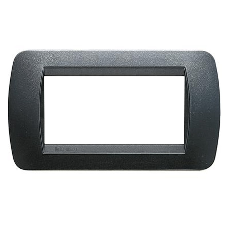 Abdeckrahmen Bticino LivingLight (ex international) 4 Module, Farbe dunkel Stahl. Der Abdeckrahmen kann auf den Rahmen L4704 (altes Modell, das nicht mehr produziert wird) und LN4704 montiert werden.