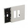 Elektrifizierter Rahmen mit Doppelsteckdosenplatte Bticino Living Now, Farbe weiß, für die Installation von 1 digitalen Steuerung und 2 Steckdosen: