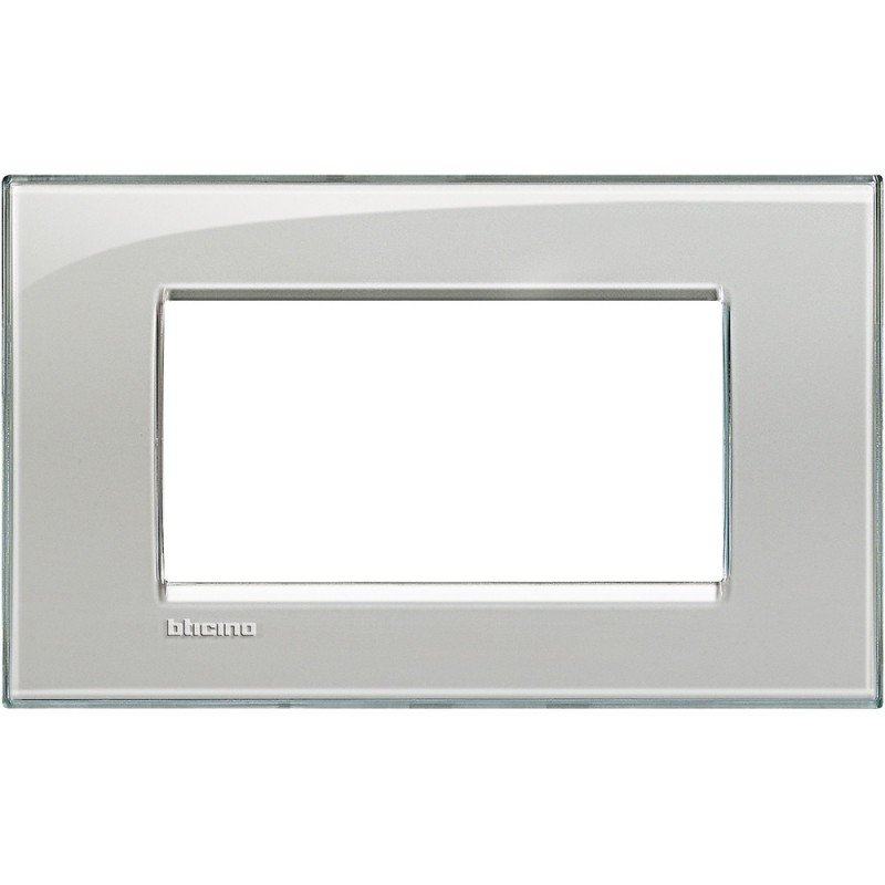 Quadra Abdeckrahmen 4 Module Bticino LivingLight eisgrau. Kann nur mit Rahmen LN4704 installiert werden. Der Abdeckrahmen wird nicht bei anderen Bticino-Serien installiert, sondern nur bei LivingLight.