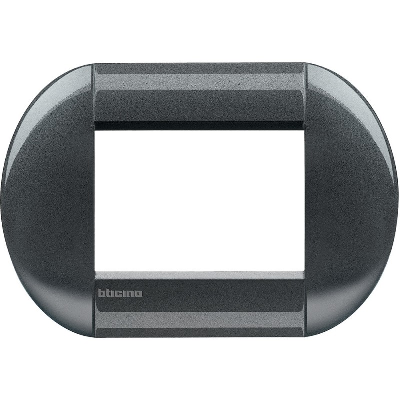 Runder Abdeckrahmen 3 Module Bticino LivingLight dunkel Stahlfarbe. Kann nur auf dem Rahmen LN4703 installiert werden. Der Abdeckrahmen wird nicht bei anderen Bticino-Serien installiert, sondern nur bei LivingLight.