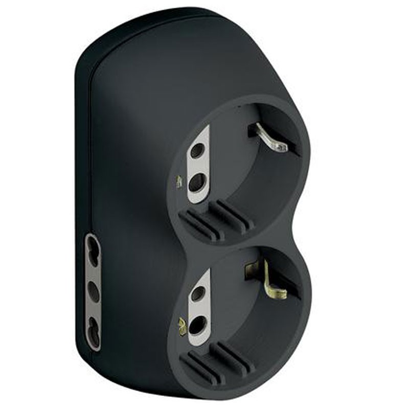 B4-Adapter 2 Doppelsteckdosen 2 deutsche Steckdosen und 16A anthrazitfarbener Stecker S3614G