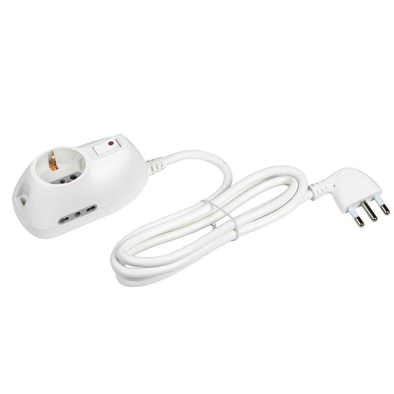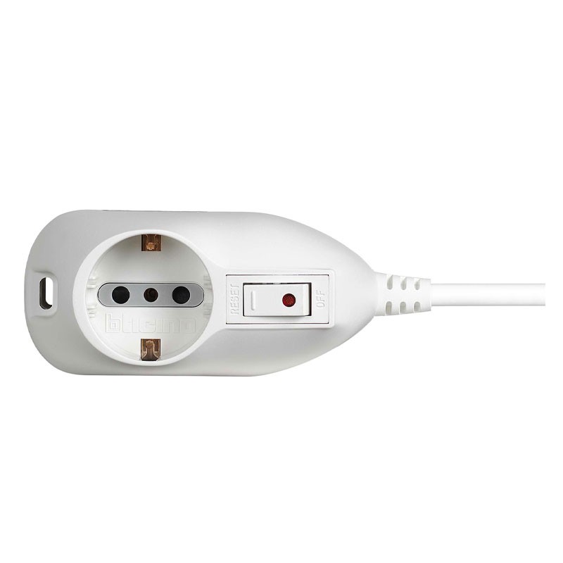 Bticino Mehrfachsteckdose mit 1 Schuko- und 2 zweipolige Steckdosen 10/16A mit weißem Schalter 3693DB