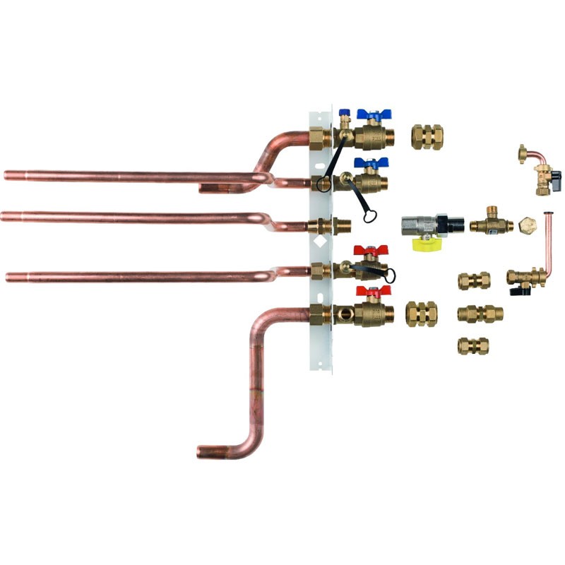 Daikin Komplettes Kit Anschlussventile und Schläuche für die Installation einer Hybrid-Wärmepumpe.