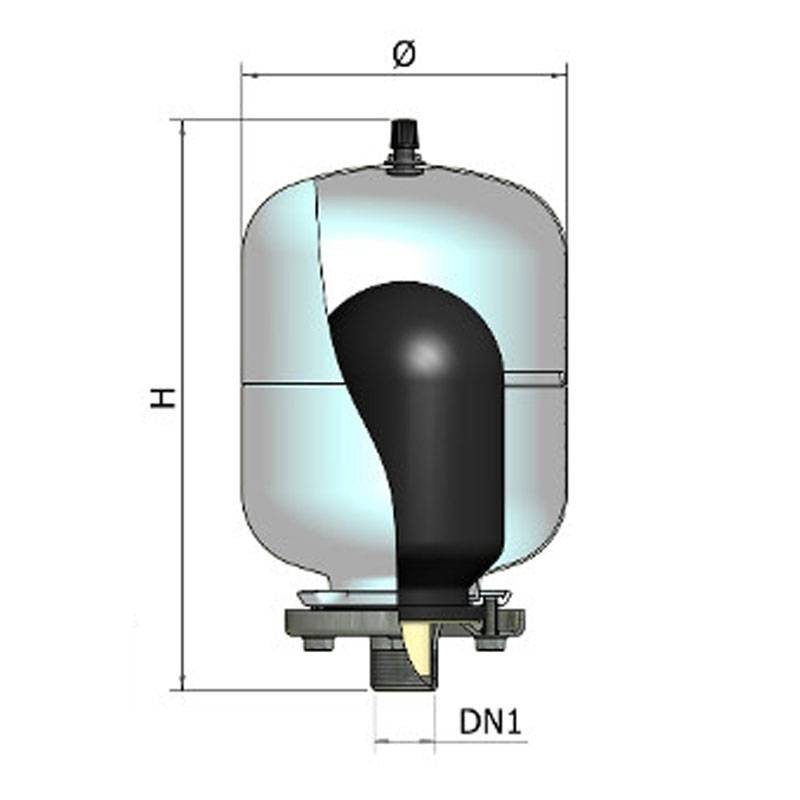 Alle Modelle werden serienmäßig mit einer EPDM-Membran geliefert; dadurch sind sie auch als sanitäres Ausdehnungsgefäß bis zu einer maximalen Auslegungstemperatur von +99°C verwendbar.