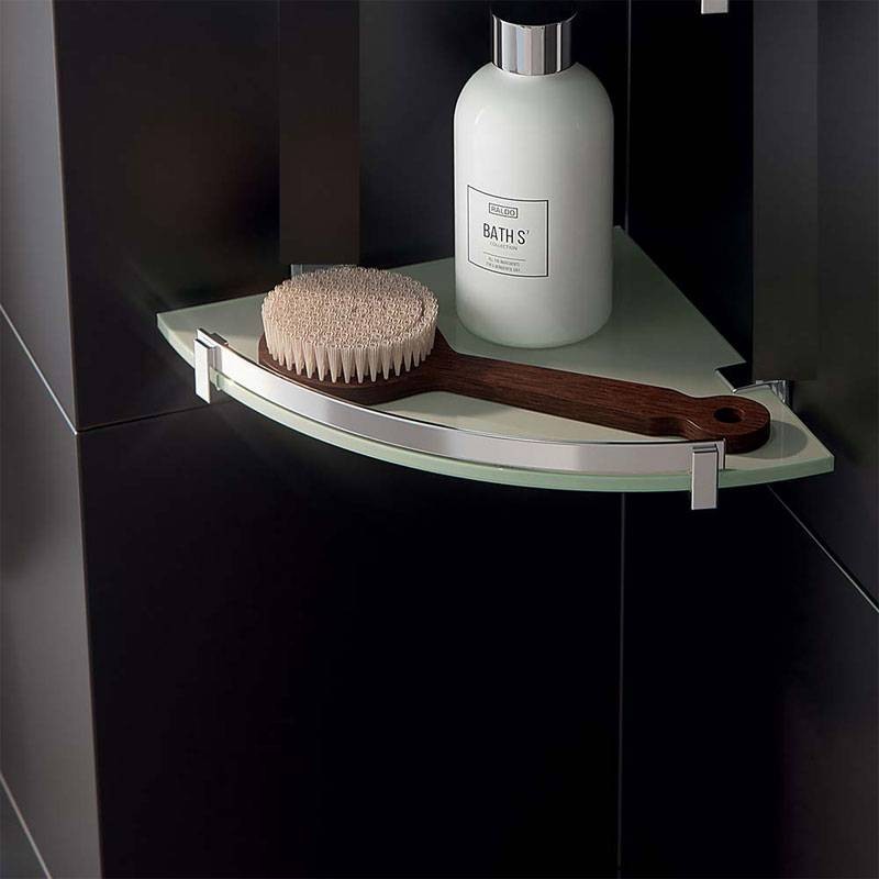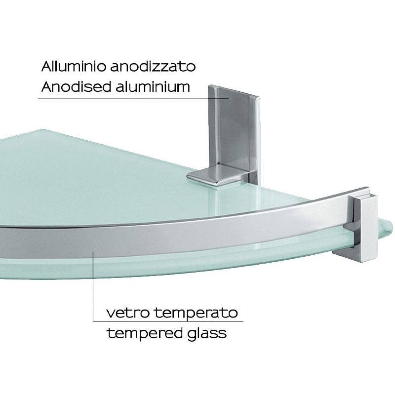 Gedy Cloud Eck-Duschablage, Material gehärtetes Glas und eloxiertes Aluminium, Maße 26x26x5,8cm.
