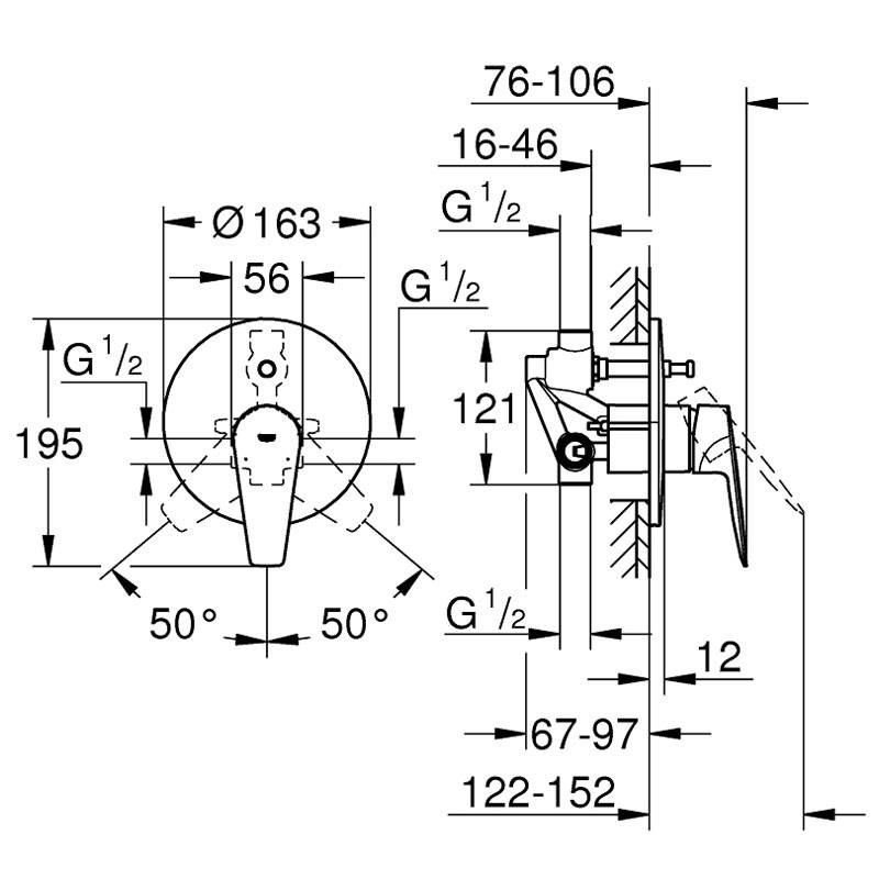 Grohe Bauedge Brausebatterie, Unterputz-Einhebelmischer mit automatischer Umstellung: