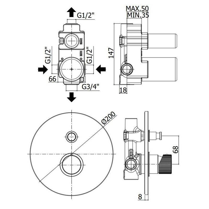 Paffoni Jo Unterputz-Duscharmatur mit 2 Ausgängen, verchromt, mit den folgenden Eigenschaften: