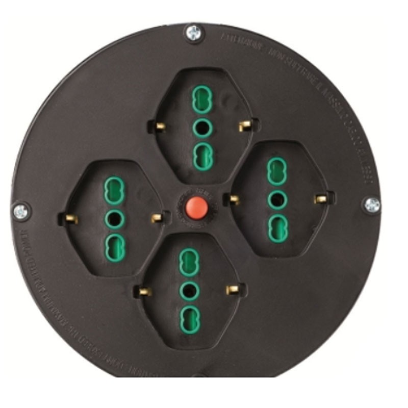 Fanton Scheibe Ø 145 mm für Kabeltrommel, mit 4 standard Steckdosen 2P+T 16A, mit Trennrelais