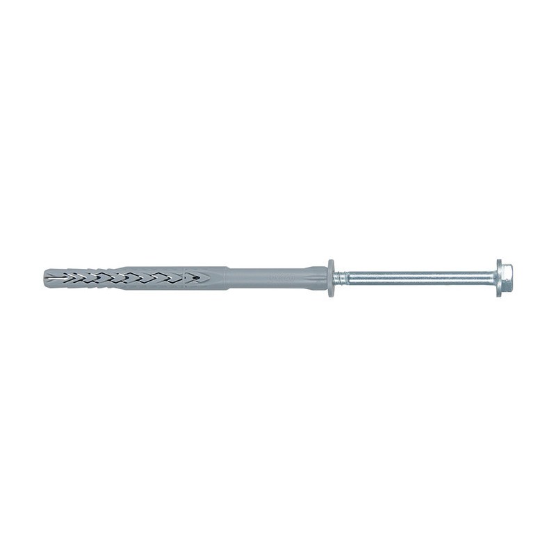 Fischer SXRL FUS 10X100 verlängerter Dübel aus verzinktem Stahl mit fischer Sicherheitsschraube mit Sechskantkopf mit Flanschscheibe und TX-Abdruck.