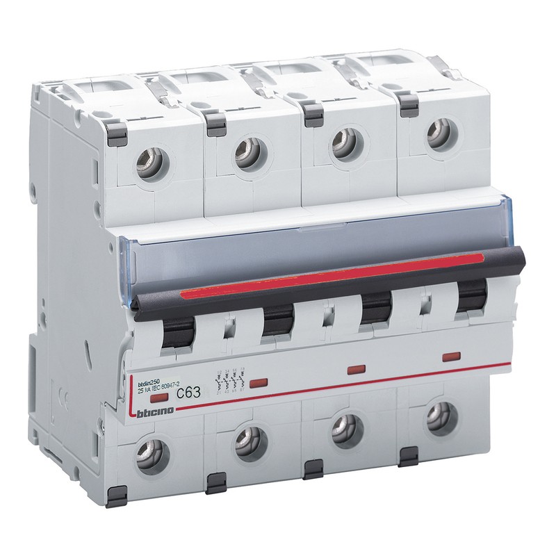Bticino Leitungsschutzschalter In 63A, Schaltleistung Icu 25KA 4P Interventionskurve C, 6 Module.