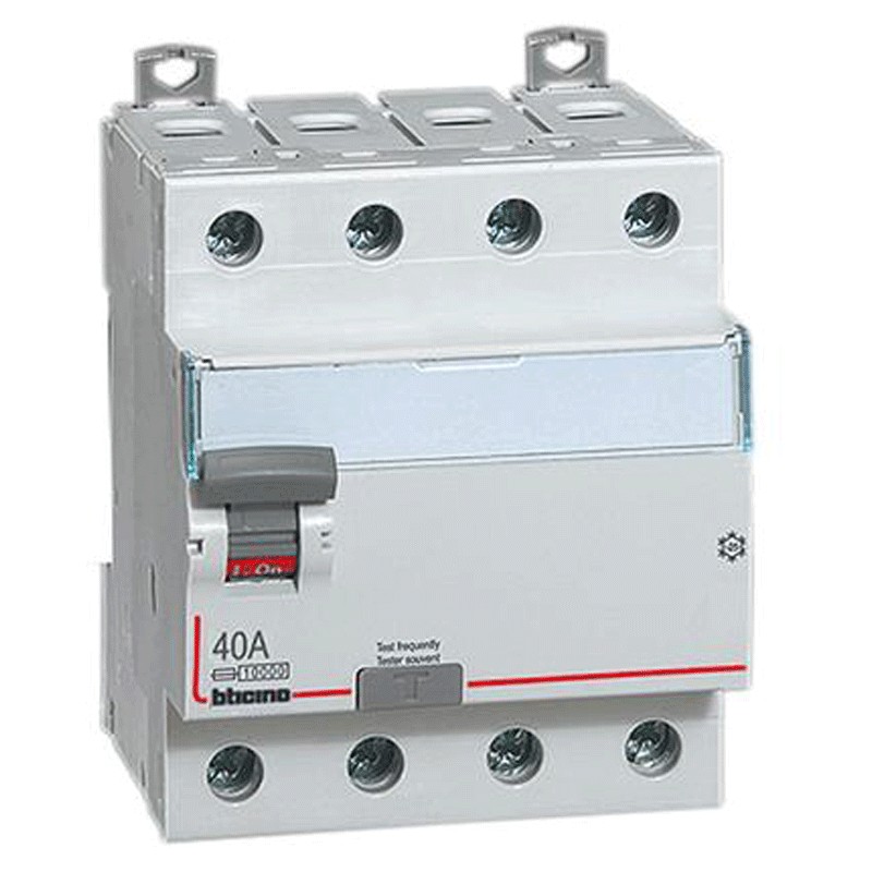 Fehlerstrom-Schutzschalter Bticino, 4 Module, DIN-Anschluss (universell für jeden Schaltschrank auf dem Markt), Pole 4P, 40 Ampere, Differenzialstrom Idn 0,5A, Spannung 400 Vac, AC-Differenzialtyp.