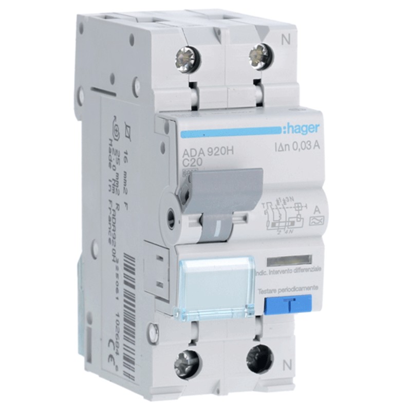 Fehlerstrom-Schutzschalter Hager 1P+N 30MA 20A ADA920H