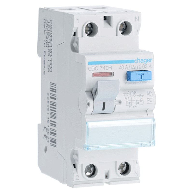 Hager Fehlerstrom-Schutzschalter 2P 40A 30MA AC 2 Module CDC740H
