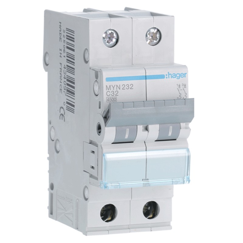 Leistungsschalter Hager 2P 32A 4,5 KA C 2 moduliMYN232