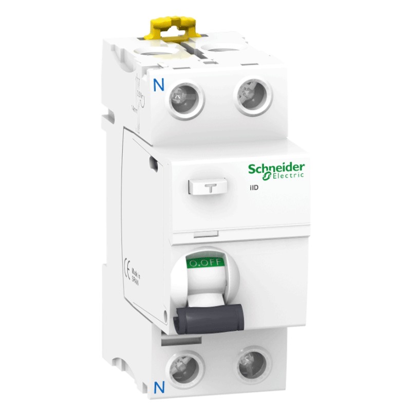 Schneider Fehlerstrom-Schutzschalter, 2 Module, DIN-Montage (universell für jede Schalttafel auf dem Markt), 2P-Pole, 25 Ampere, Differenzialstrom Idn 30mA, Spannung 220/240 Vac, AC-Differenzialtyp.