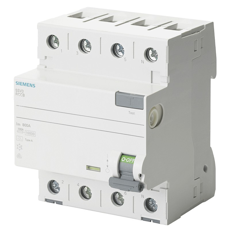 Fehlerstrom-Schutzschalter Siemens, 4 Module, DIN-Anschluss (universell für jeden Schaltschrank auf dem Markt), Pole 4P, 25 Ampere, Differenzstrom Idn 300mA, Spannung 500 Vac, Differenztyp A.
