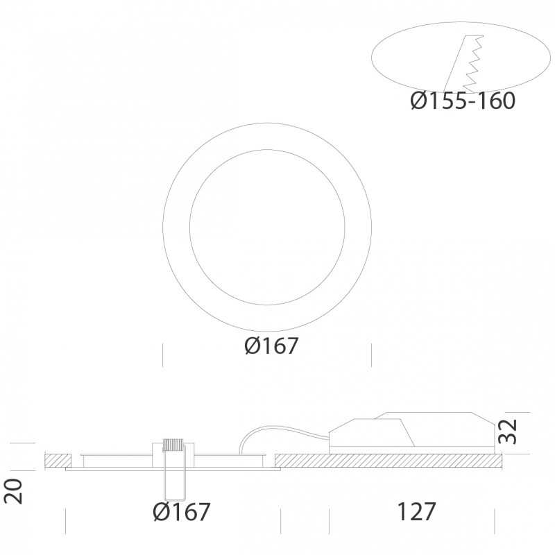 - Einbau-Durchmesser 155/160mm