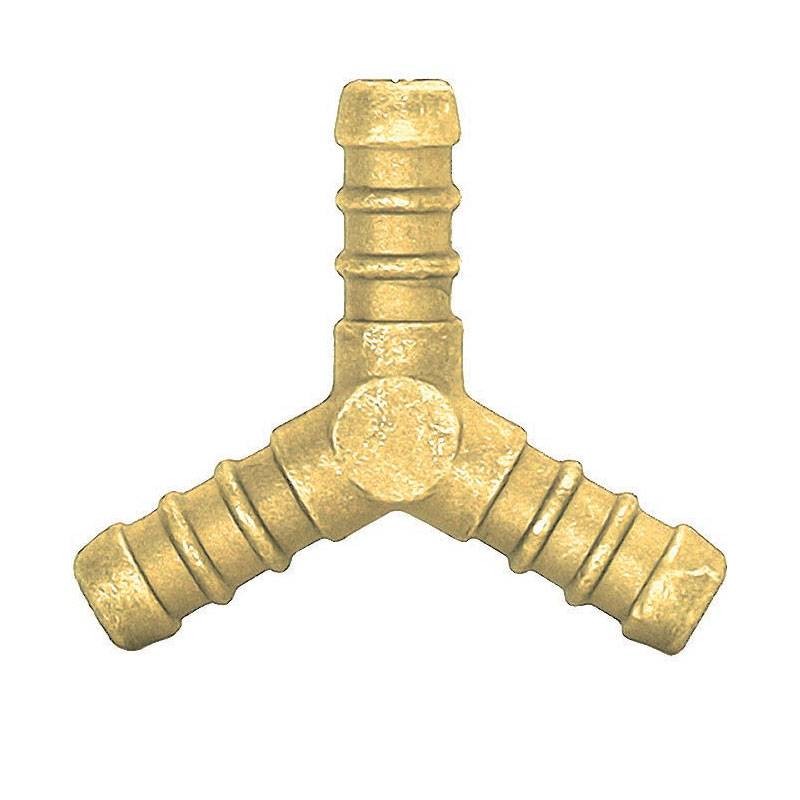 Ferrari 3-Wege-Schlauchtülle für Erdgas, Y-Form aus Messing. Einlass/Auslass 14 mm.