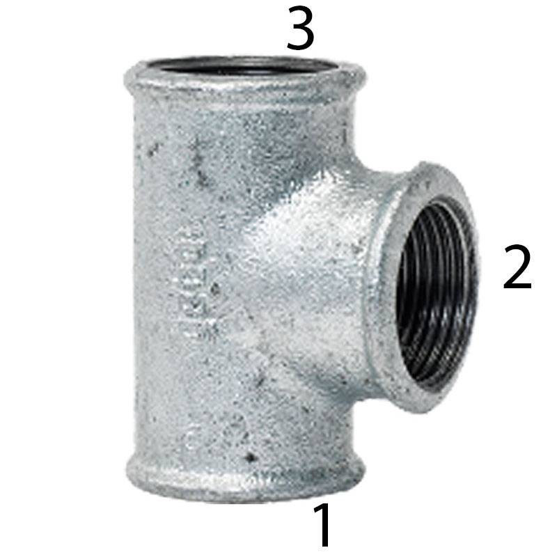 Gebo T-Stück 90° mit Gewinde aus Temperguss für Rohre der Serie 130 mit den folgenden Merkmalen: