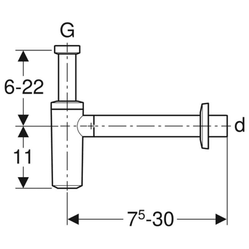 Geberit Geruchsverschluss mit Tauchrohr für Waschtisch, mit Wandabdeckung zum Ablauf, horizontaler Ablauf mit folgenden Eigenschaften