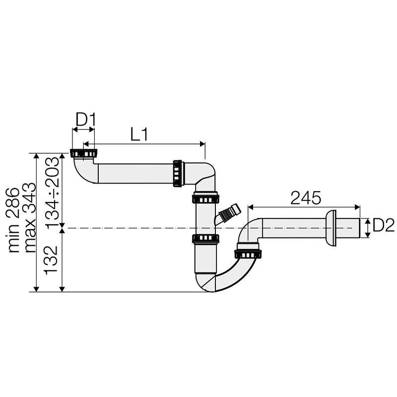 Platzsparender Valsir Geruchsverschluss für Eineinhalbspülbecken aus Polypropylen mit folgenden Eigenschaften