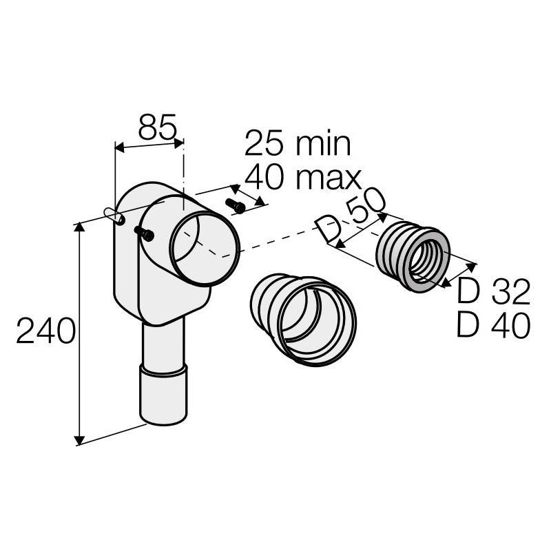 Valsir Geruchsverschluss Unterputz für Waschtisch D 50/40 mm VS0704002
